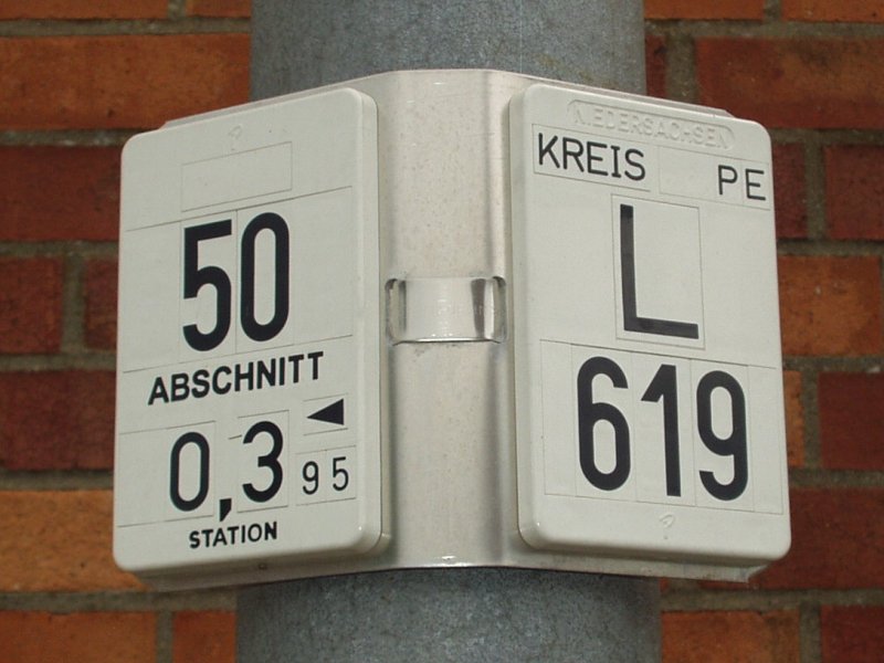 In Niedersachsen ersetzen seit 2007 so genannte Stationszeichen die alten Kilometersteine. Die Stationszeichen wurden im Abstand von 200 Metern in der Regel an den Leitpfosten oberhalb der schwarzen Markierung befestigt (siehe Bild rechts).