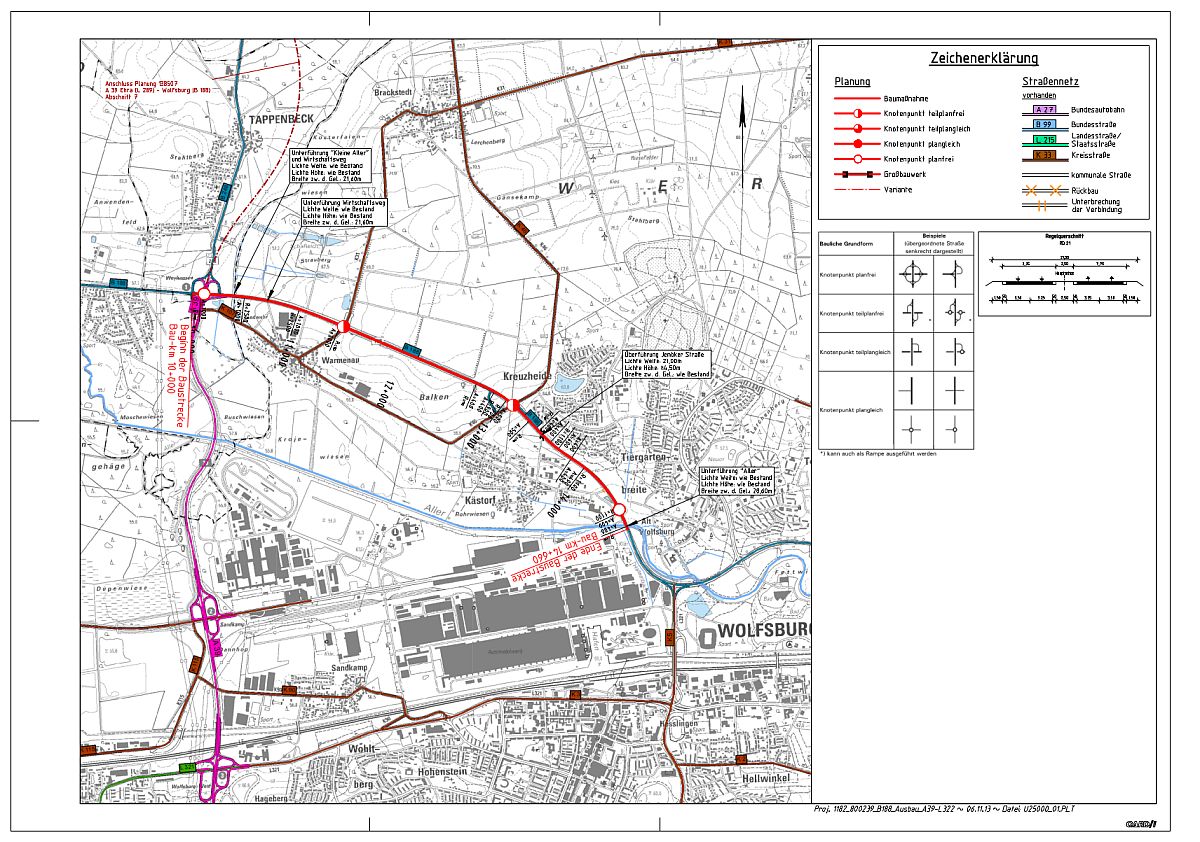 B 188: Vierstreifiger Ausbau zwischen der A 39 und der K 5 in Wolfsburg