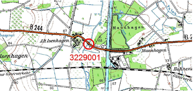Das Brückenbauwerk unterführt das Fließgewässer Ise im Zuge der B 244 zwischen Wittingen und Hankensbüttel im Landkreis Gifhorn und wird durch eine straßenbegleitende Radwegbrücke ergänzt. Beide Bauwerke sind nicht geeignet, die zukünftigen Verkehrsbelastungen aufzunehmen, und müssen durch einen Neubau ersetzt werden.