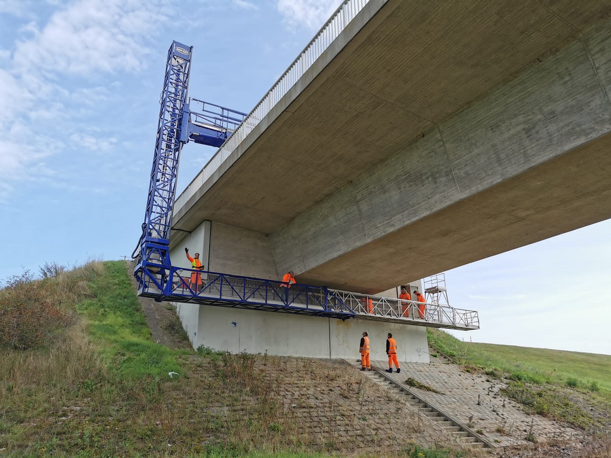 Bei der jährlichen Besichtigung gehen die Prüfer auch in die begehbaren Hohlräume des Bauwerks. Sie untersuchen das Bauwerk auf außergewöhnliche Veränderungen, Mängel an Verkehrszeichen, Schutzeinrichtungen und Absturzsicherungen, an den Entwässerungseinrichtungen, an den Übergangskonstruktionen, an den Belägen und an den Böschungen sowie auf Risse, Verformungen, Verschiebungen und Betonabplatzungen.