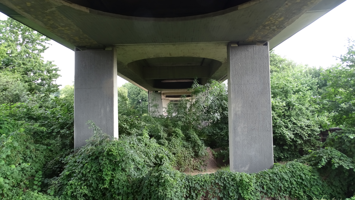 Die im Jahr 1965 errichtete Brücke besitzt einen 2-stegigen Plattenbalkenquerschnitt aus Spannbeton und überspannt das Tal mit 6 Feldern und einer Gesamtstützweite von 176,60 m (27,5 m – 4 x 30,40 m – 27,5 m).