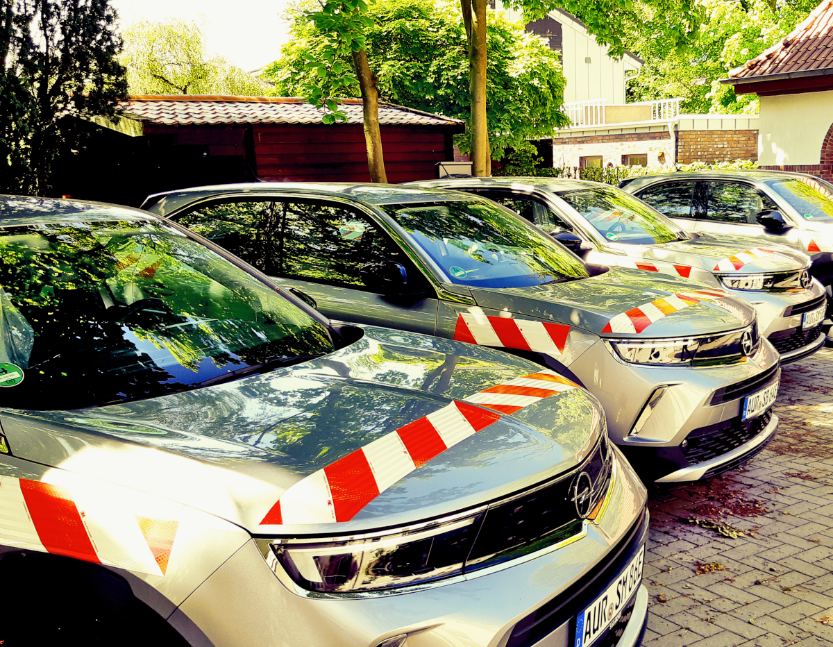 Neue Elektrofahrzeuge des Geschäftsbereichs Aurich der Landesbehörde.