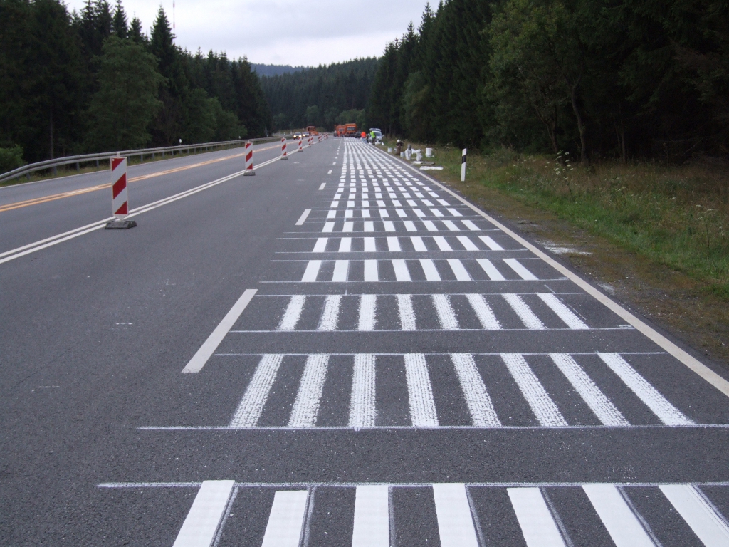 Von 2006 bis 2011 wurden auf der B 4 zwischen Bad Harzburg und Torfhaus insgesamt 100 verschiedene Fahrbahnmarkierungssysteme unter kontrollierten Bedingungen aufgebracht. Sie werden dort über mehrere Jahre insbesondere auf ihre Schneepflugtauglichkeit getestet. Neben den deutschen Herstellern sind auch Firmen aus England, der Schweiz, Dänemark, Frankreich, Österreich, den Niederlanden und Schweden daran beteiligt.
