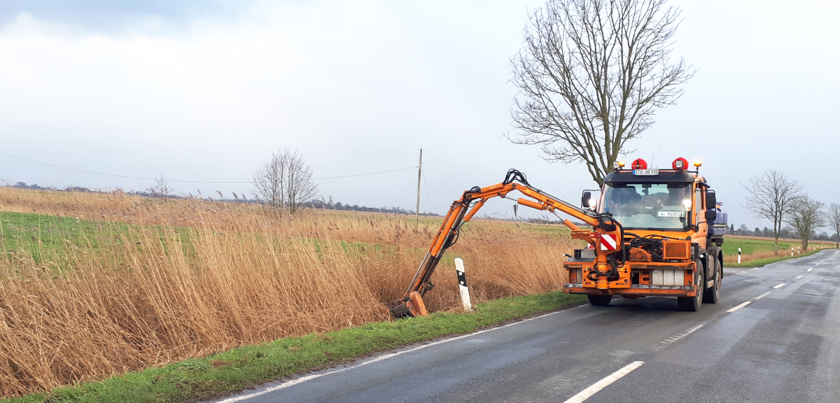 Die regelmäßige Mahd erhöht die Sicherheit auf der Straße auch dadurch, dass sie die seitliche Entwässerung über das Bankett sichert. Und nicht zuletzt erhält die Mahd die Gräser und krautigen Pflanzen auf diesen Flächen. Sie können somit weiter als Lebensraum für Insekten dienen.