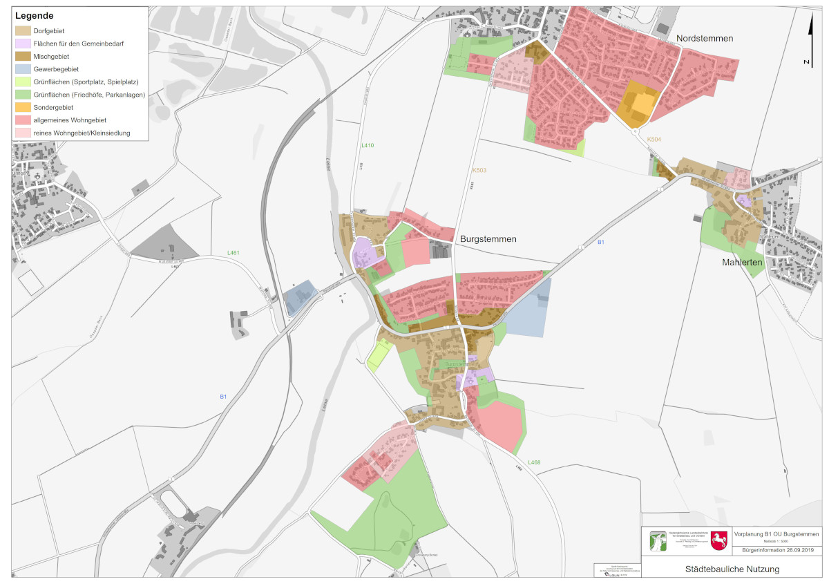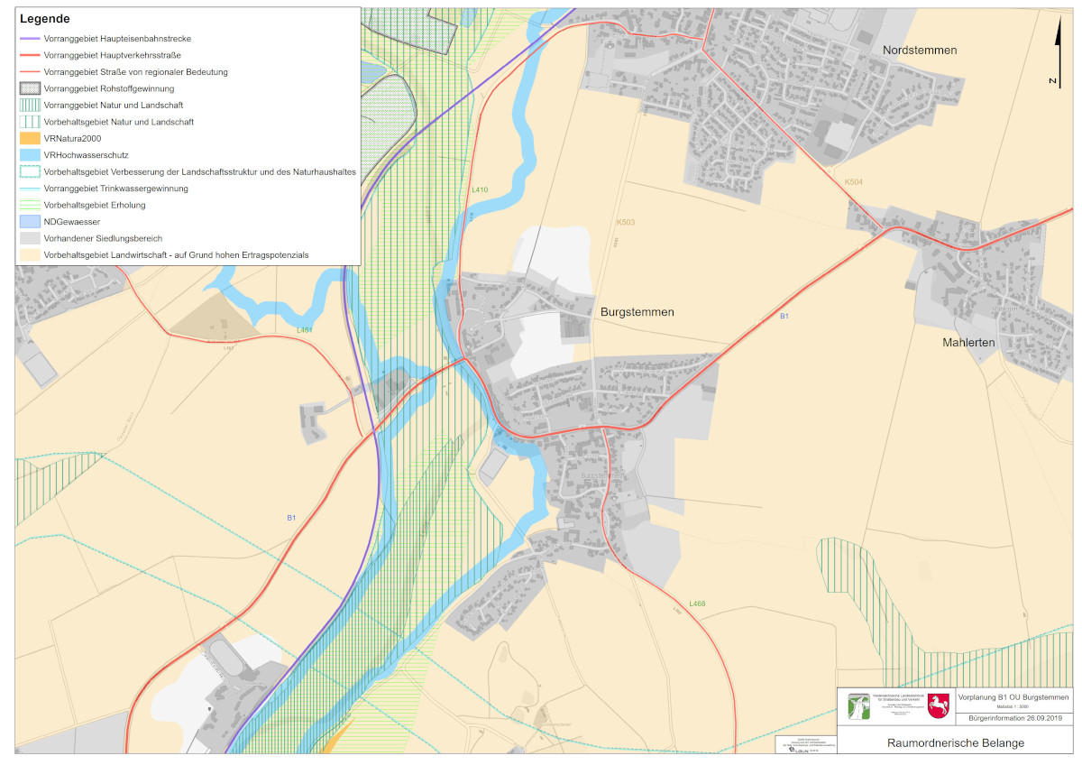Die Niedersächsische Landesbehörde für Straßenbau und Verkehr (NLStBV) plant die Verlegung der Bundesstraße 1 im Bereich der Ortschaften Burgstemmen und Mahlerten (Landkreis Hildesheim). Der Planungsauftrag wurde im Januar 2019 erteilt; zunächst nur für Burgstemmen, später wurde die Umfahrung von Mahlerten einbezogen. Die Antragskonferenz beim Landkreis Hildesheim fand im Juni 2020 statt.