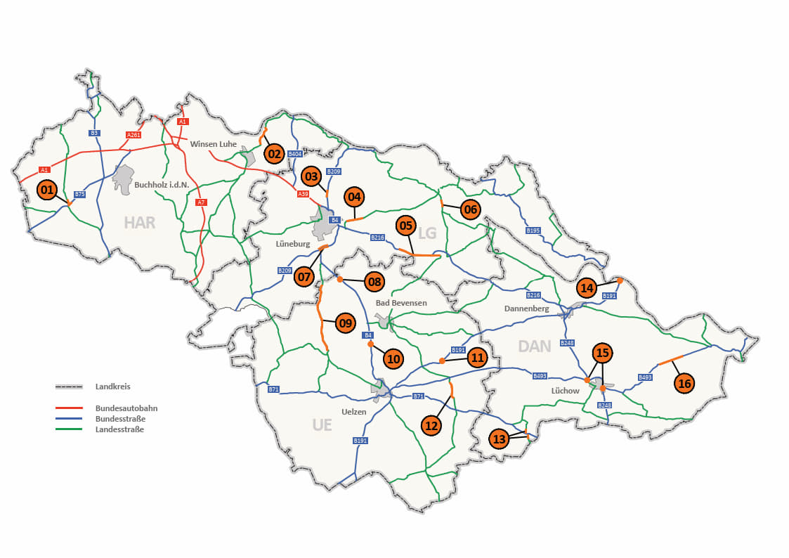 Aktuelle Baustellenübersicht im regionalen Geschäftsbereich Lüneburg