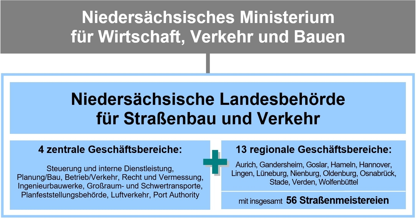 Die Landesbehörde für Straßenbau und Verkehr ist dem Niedersächsischen Ministerium für Wirtschaft, Verkehr und Bauen nachgeordnet.