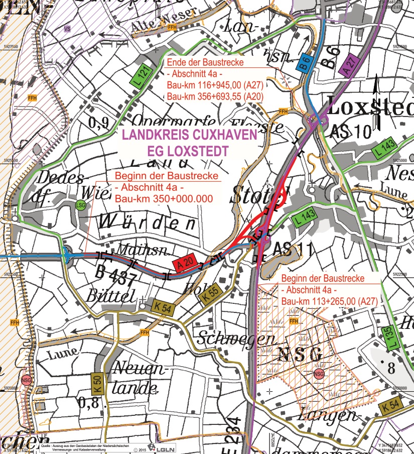Abschnitt 4a: Von östlich der Weserquerung (L 121) bis Stotel (A 27)