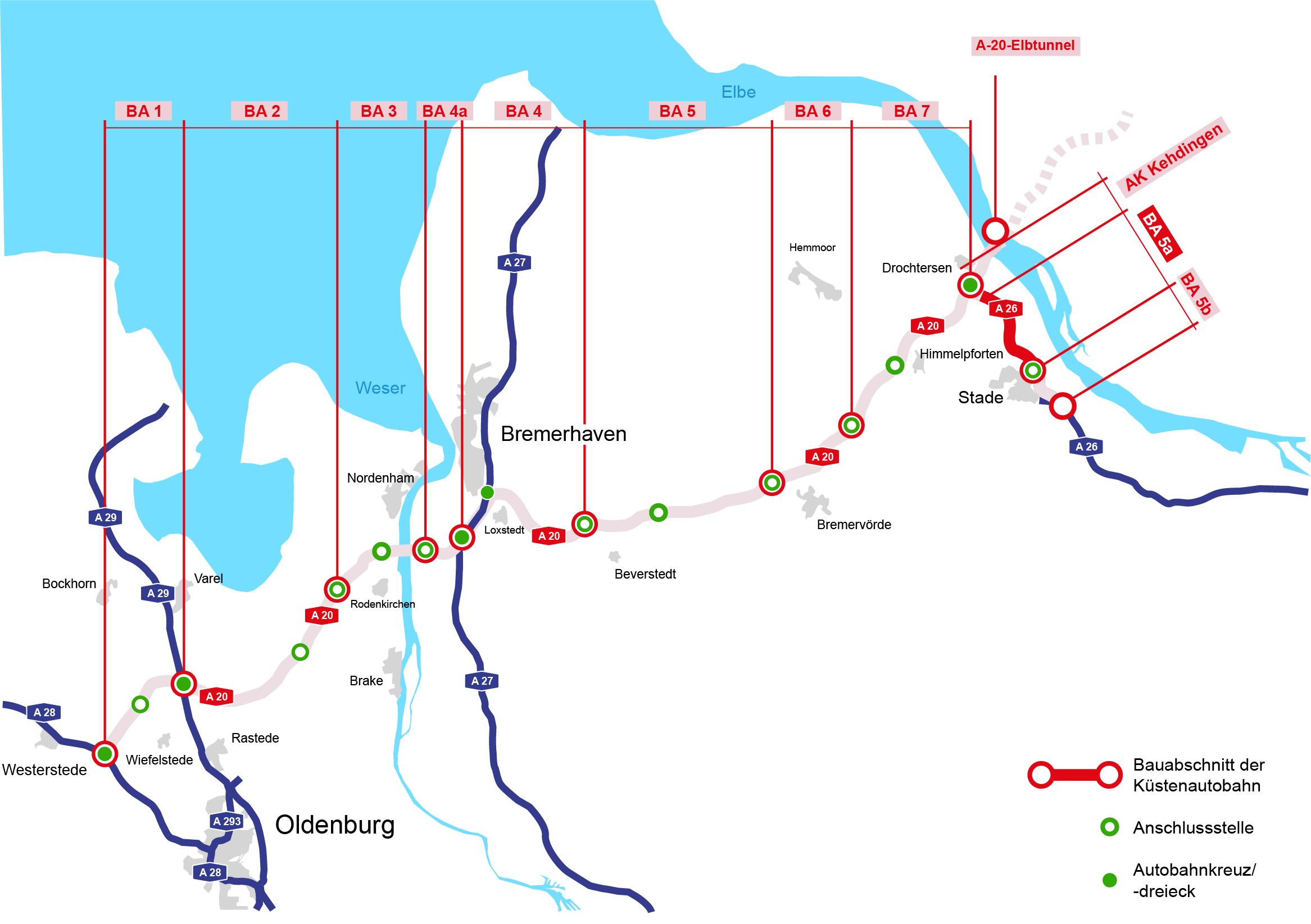 Der Abschnitt 5a umfasst hierbei den Anschluss an das Autobahnkreuz A 20/ A 26 bis zur Anschlussstelle an die L 111 und die Freiburger Straße. Anschließend folgt der Abschnitt 5b.