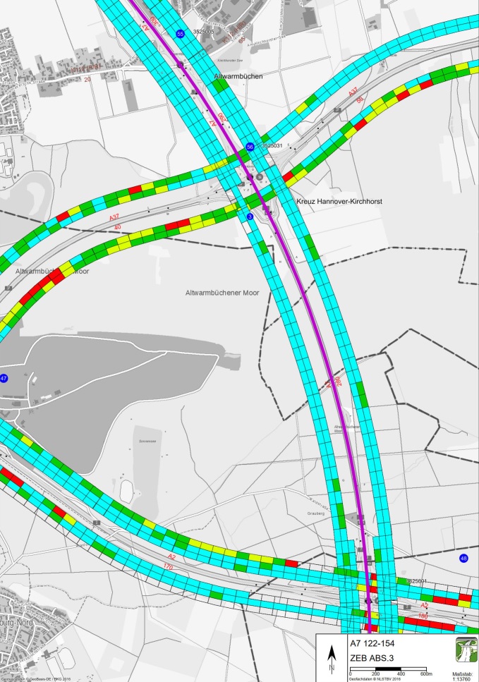 Beispielhafte Darstellung der ZEB im Bereich des Kreuzes Hannover-Ost (rechts unten).
