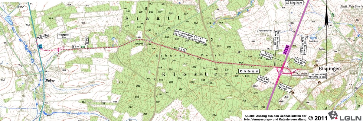 - Ortsumgehung Heber als B 3 (neu) unter Einbeziehung der L 170. Die gesamte Baustrecke beträgt 1.670 m. Die Baukosten betragen rund 1,9 Millionen Euro, die je zur Hälfte vom Landkreis Heidekreis und aus Mitteln des Europäischen Fonds für regionale Entwicklung (EFRE) finanziert werden.