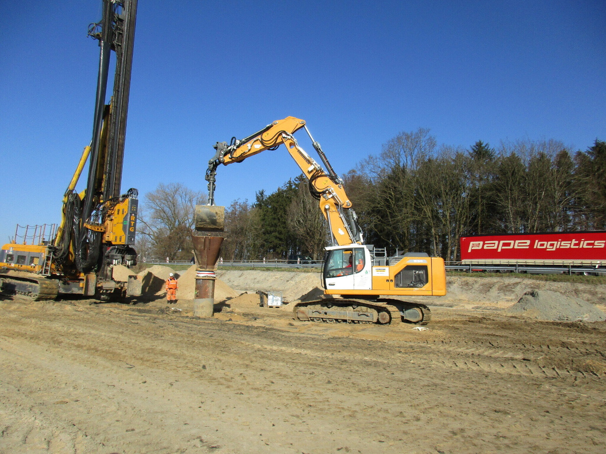 Hierfür werden 6.800 geotextilummantelten Sandsäulen auf beiden Seiten in den Boden eingebaut. Jede Sandsäule hat eine durchschnittliche Länge von 12 m und einen Durchmesser von 80 cm. Diese werden auf 23.900 m² Baugrund beidseitig der Ostebrücke gesetzt, um die maximale Stabilität des künftigen Brückendamms herzustellen. Diese Bauphase wird voraussichtlich bis Pfingsten 2025 vollendet.