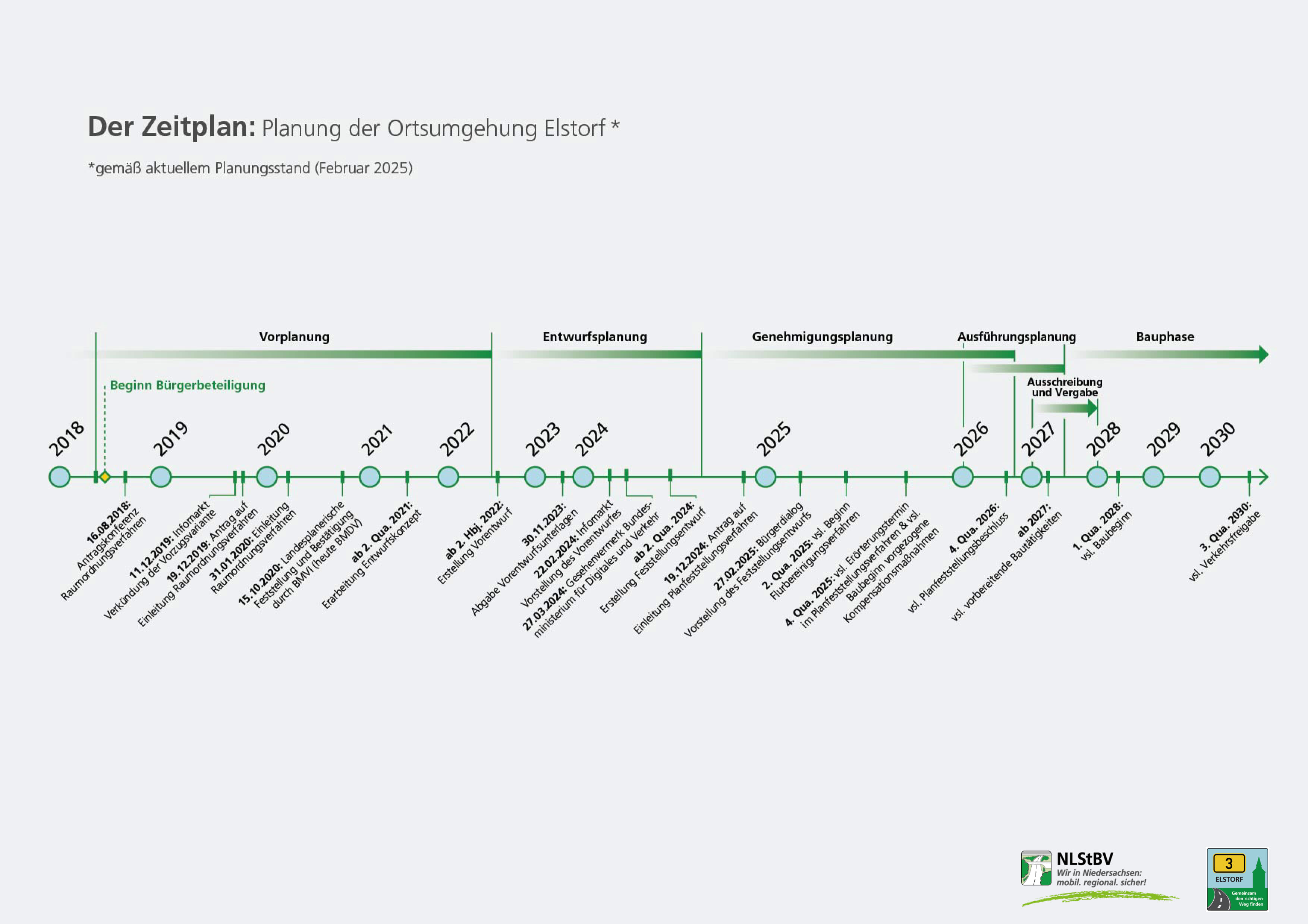 Der damalige Verkehrsminister Dr. Bernd Althusmann (CDU) hatte die Ortsumgehung Elstorf zum Pilotprojekt für Planungsbeschleunigung in Niedersachsen erklärt, was insbesondere durch eine umfassende und frühzeitige Bürgerbeteiligung realisiert werden soll.