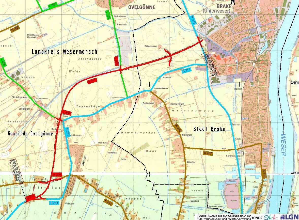 Neubau der Bundesstraße 211 von westlich Mittelort bis Brake