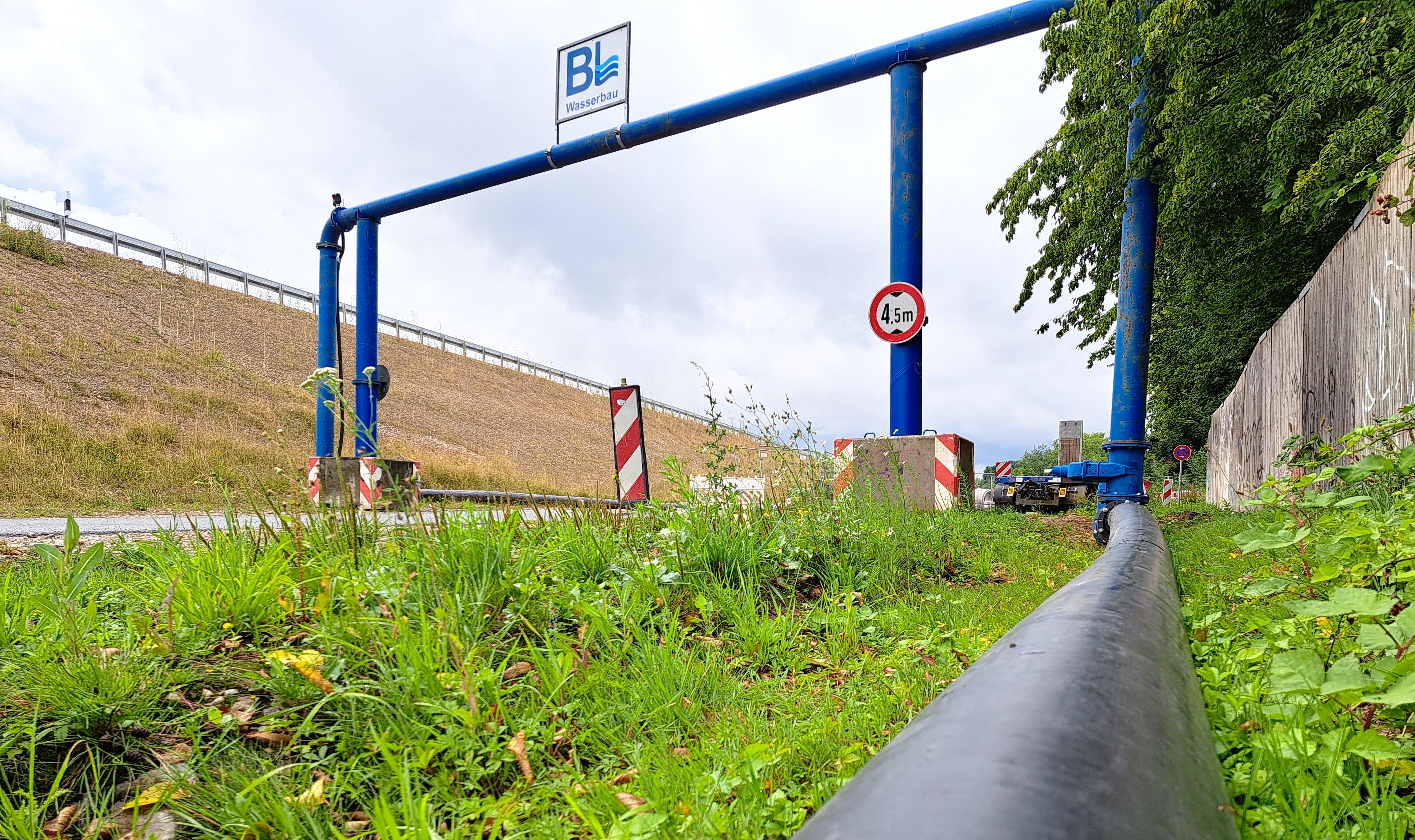 Verkehr und Baumaschinen - beides passt leider nicht auf die Straße. Schutzplanken müssen abgebaut oder verschoben werden. Deswegen müssen wir wieder einmal stören. Zwar haben wir währenddessen Schulferien, und nicht alle müssen ihre Pendelstrecke fahren. Trotzdem aber möchten wir uns jetzt schon einmal für die Störung entschuldigen.