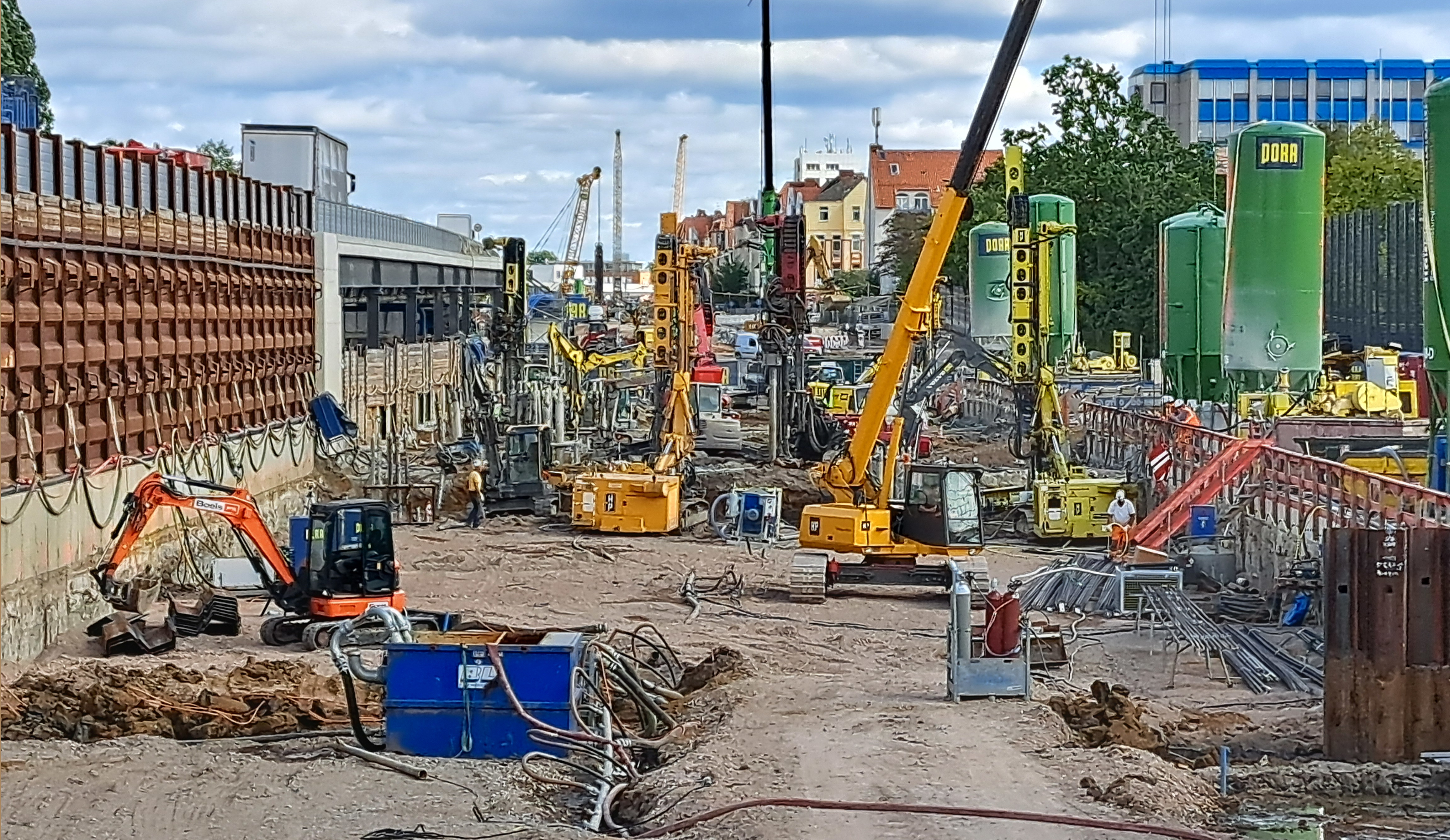 Was ist eigentlich in der Mitte der Tunnelbaustelle so los? Also zwischen der Schützenallee und dem schon recht prominenten Baudock 8 an der Hildesheimer Straße? Die unverfängliche Frage bringt eine überraschende Antwort: Dort sind wir wieder einmal mit einem sehr speziellen Verfahren zugange.