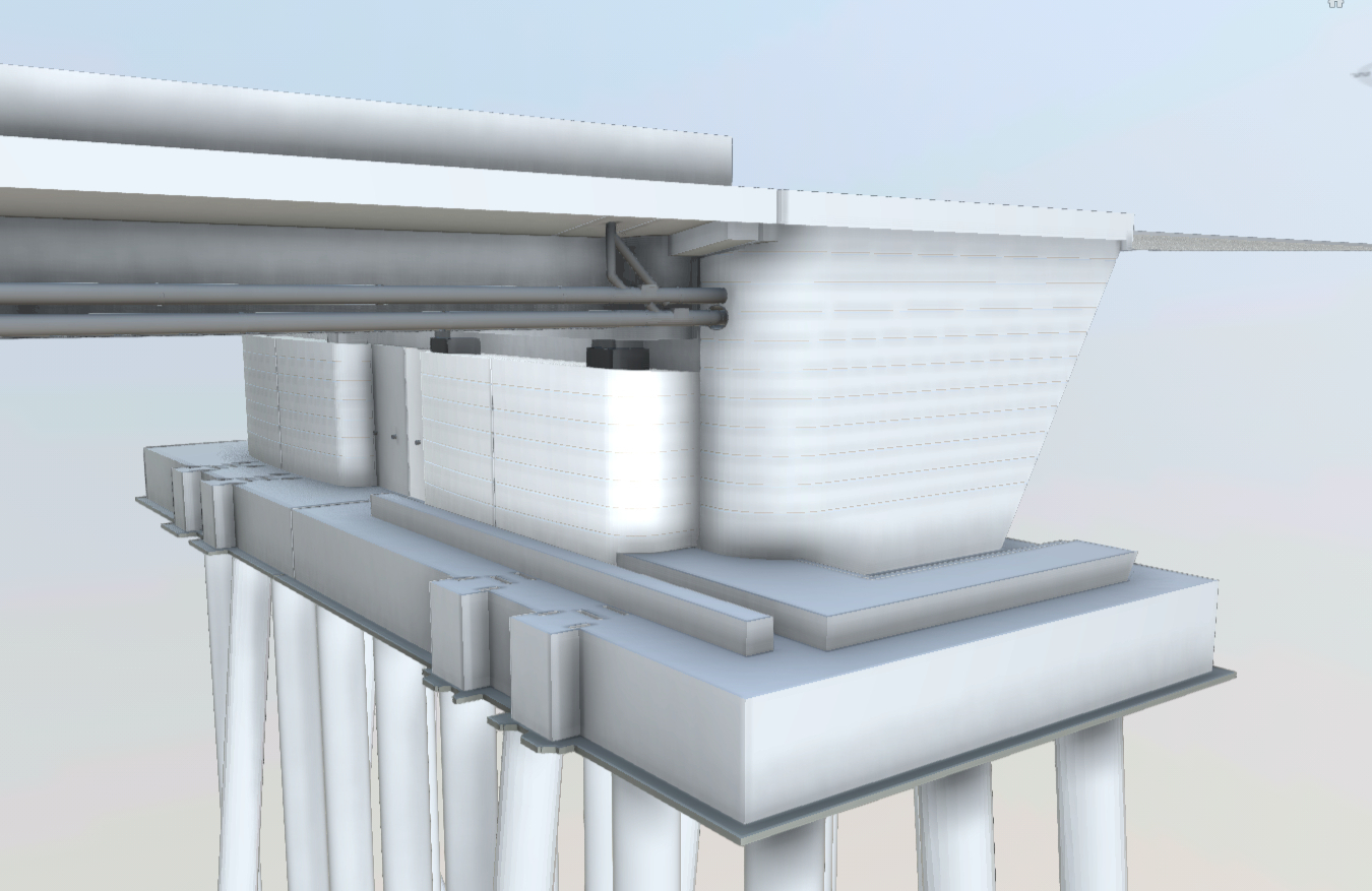 Die Brücken liegen anschließend locker auf ihren Lagern. Das wars. Weitere Befestigungen an die tragende Konstruktion sind nicht nötig – die Brücken sind schwer genug. Außerdem werden sie über die oben liegenden Schienen gehalten, die dann später fest verschweißt sind.