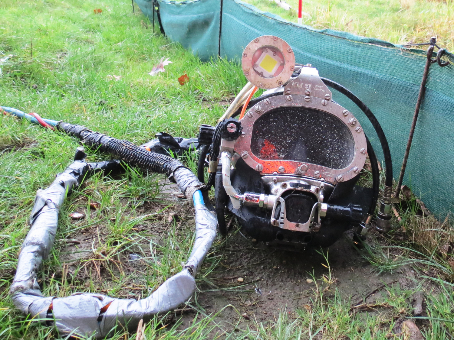 Kalt war es aber auch am Südschnellweg. Und nass. Und so war zumindest ein Neoprenanzug bitter nötig, um nicht vor lauter Schlottern nichts mehr zu ertasten. Uns wurde jedenfalls schon beim Zugucken kalt. Und nicht nur uns: Auch routinierte Taucher ziehen sich gerne im Warmen um. Dafür haben sie sogar einen beheizten Anhänger dabei.