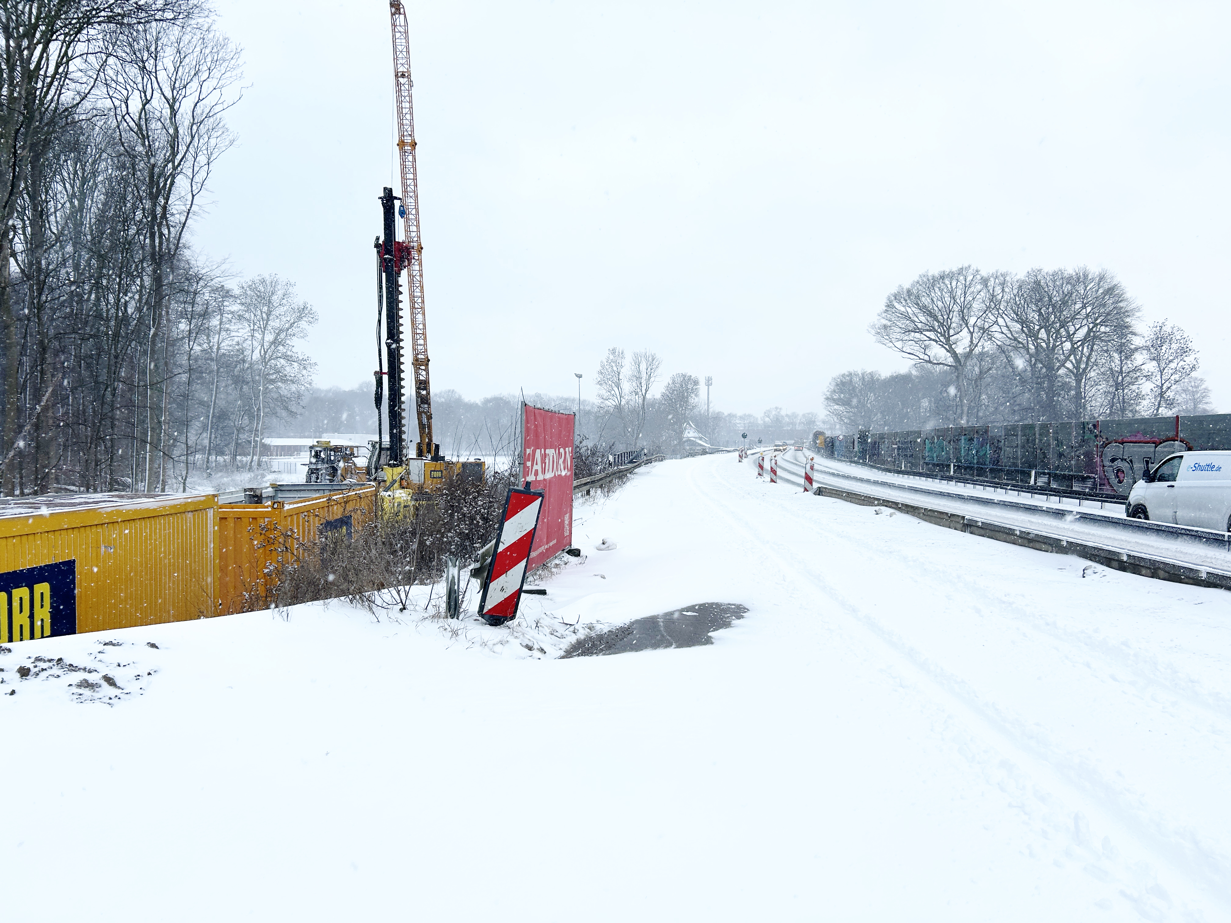 Aber auch an vielen anderen Stellen dieser spektakulären Baustelle wird es Berichtenswertes geben – mal ganz Grundlegendes, mal etwas nach der Art „typisch Südschnellweg“. Zum Beispiel: Wie ein Gerüst langsam über den Ricklinger Kiesteich schwebt.