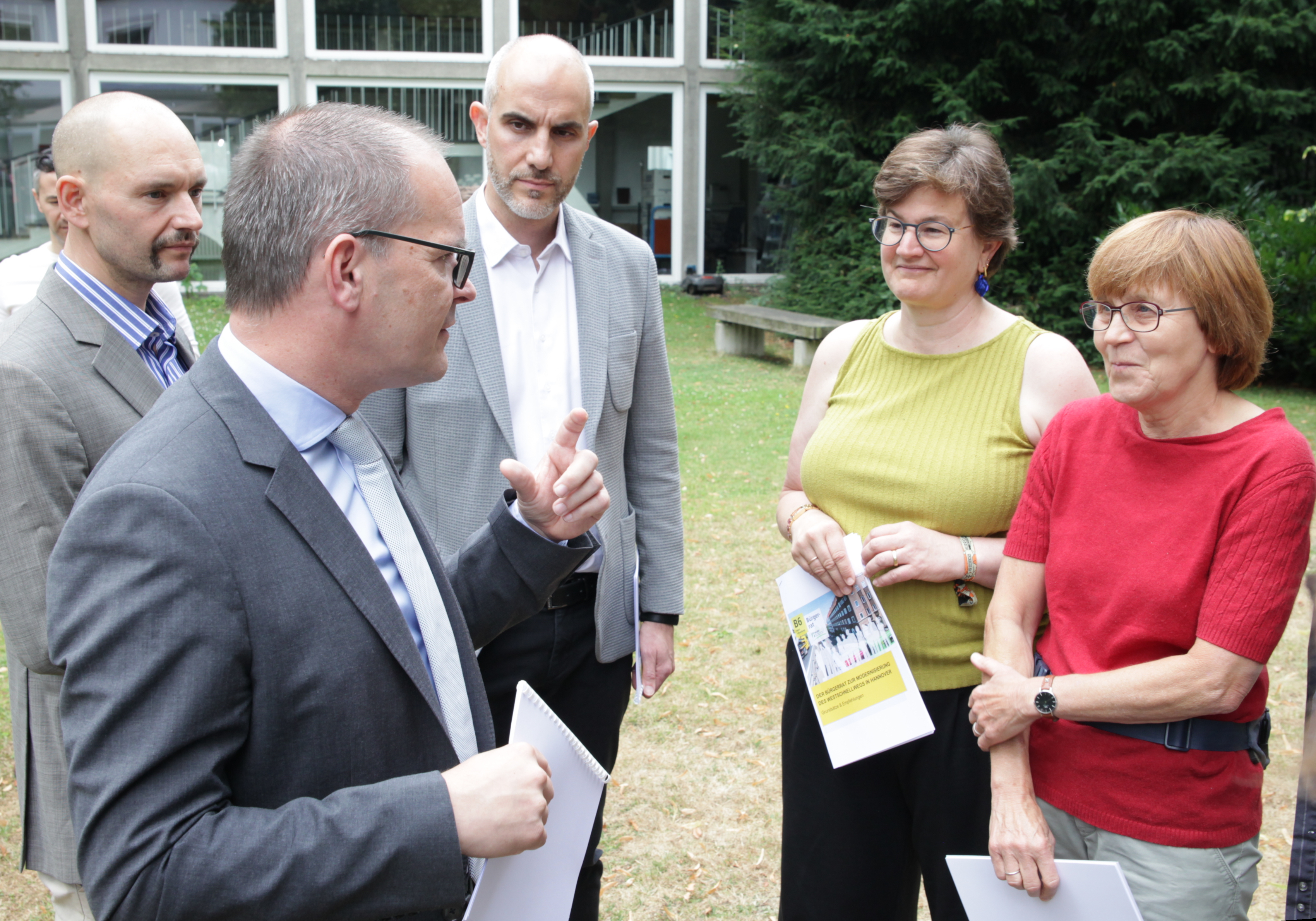 Das Niedersächsische Verkehrsministerium und die NLStBV haben am Dienstag, 8. Juli 2025, die Arbeitsergebnisse des Bürgerrates zur Sanierung des Westschnellweges in Empfang genommen. Die Ergebnisse umfassen sieben übergeordnete Grundsätze und 31 Empfehlungen. Im Mittelpunkt stehen Vorschläge zur Stärkung nachhaltiger Mobilität, zum Schutz und zur Entwicklungvon Klima, Umwelt und Stadtquartieren sowie zur Gestaltung einer zukunftsfähigen Infrastruktur.