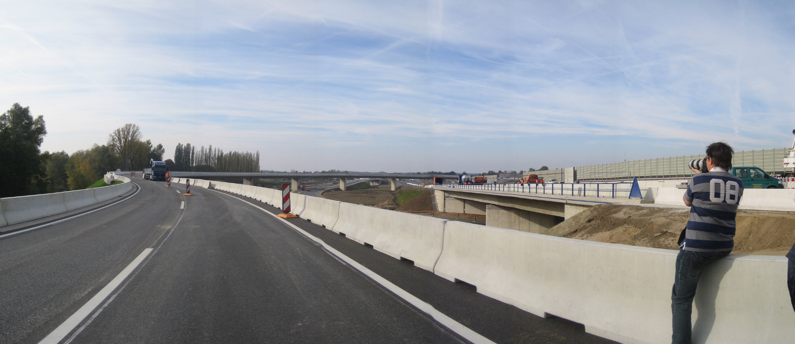 Der Brückenüberbau wurde bis Ende 2009 fertig betoniert. 2010 folgten die Asphaltierung sowie die Ausstattung des Bauwerks u. a. mit Schutzplanken und Geländern. Seit Mitte Oktober 2010 ist das Bauwerk unter Verkehr; seit Ende August 2012 kann der Überflieger ohne Einschränkungen genutzt werden.