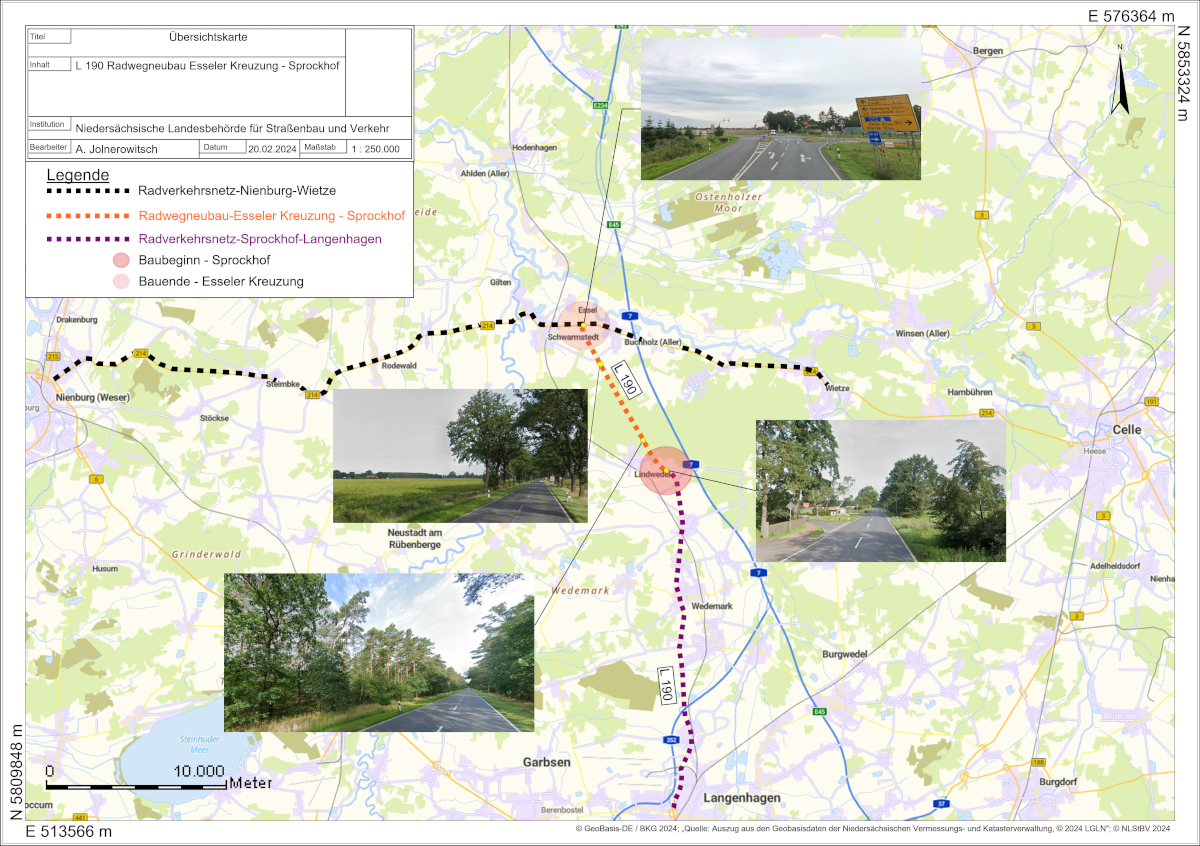 Der Planungsbereich erstreckt sich von der Buswendeschleife in Sprockhof an der L 190 bis zum Kreuzungsbereich L 190 / B 214 in der Gemeinde Essel. Die geplante Radwegstrecke soll insgesamt über die vier Gemeinden Essel, Buchholz (Aller), Lindwedel und Wedemark in etwa zur Hälfte über Ackerflächen und Waldgebiet führen. Der geplante Radweg stellt eine wichtige Verbindung in der lokalen sowie überregionalen Radwegeinfrastruktur dar. Durch den Neubau werden die beiden bestehenden Radverkehrsnetze im Norden Nienburg-Wietze und im Süden Sprockhof-Langenhagen miteinander verbunden werden.