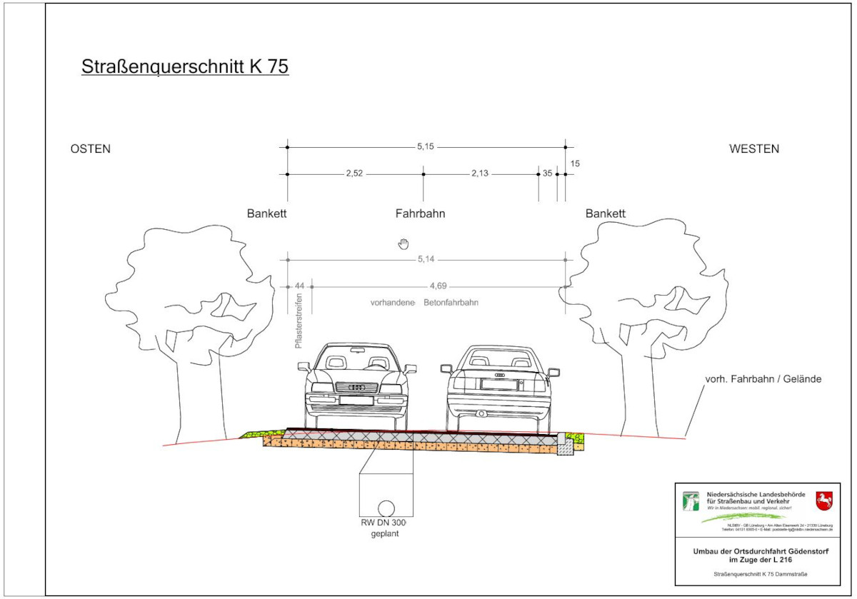 "Unter Berücksichtigung der örtlichen Gegebenheiten wird innerhalb der Ortsdurchfahrt Gödenstorf ein sowohl bautechnisch als auch verkehrlich optimierter Zustand durch den Umbau erreicht."