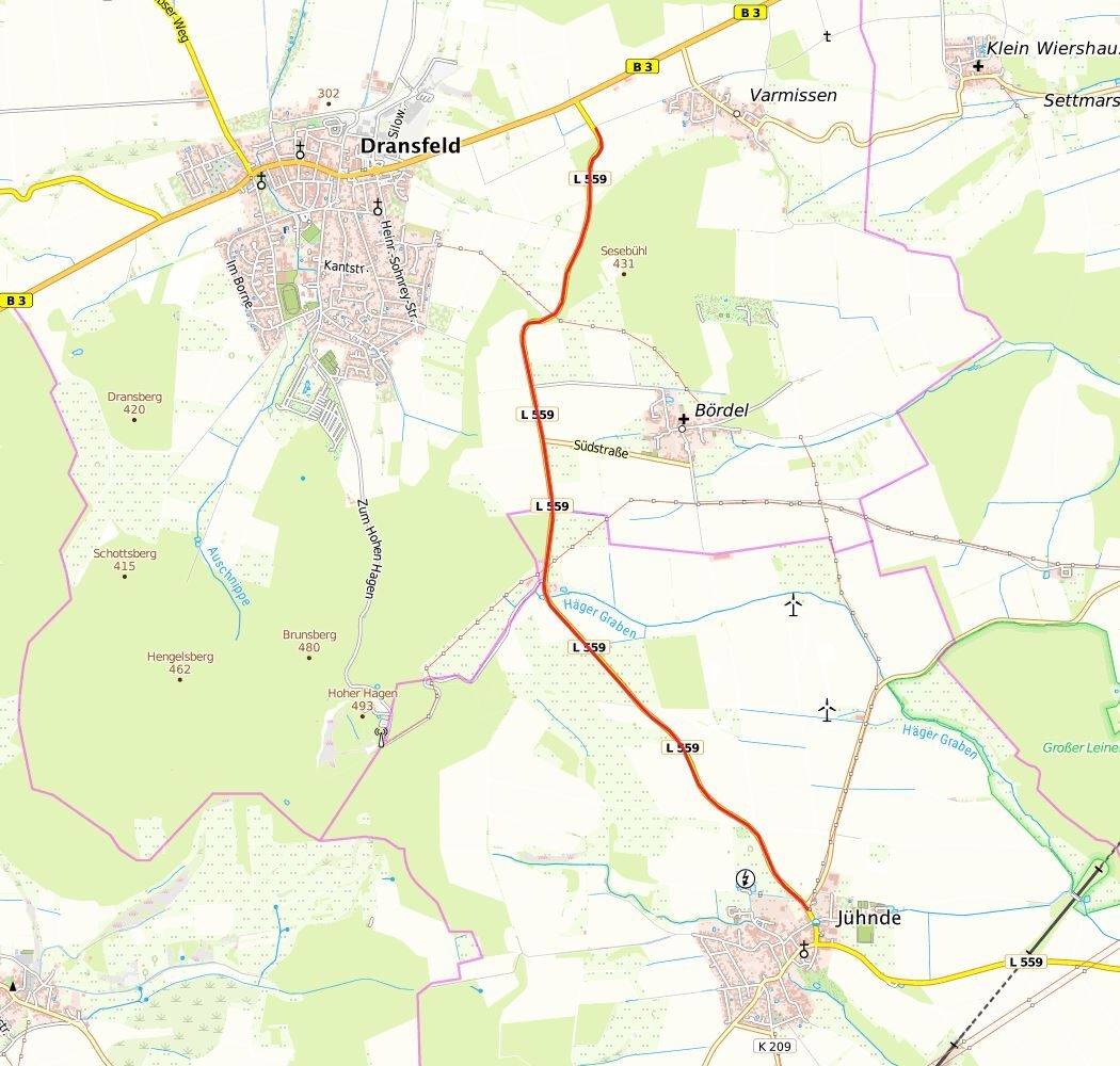 Der neue Radweg soll einen Lückenschluss bilden und Jühnde an den Weser-Harz-Heide-Radfernweg anschließen sowie eine neue Verbindung von Dransfeld nach Jühnde schaffen. Ob die Wegeführung parallel der Straße oder über bestehende Wirtschaftswege führt, ist noch völlig offen. Auch mit Hilfe der Umfrage soll dieser Punkt weiter konkretisiert werden.Der neue Radweg soll dann im Norden circa 200 m südlich der B 3 an das vorhanden Radwegenetz anschließen und bis nach Jühnde führen.
